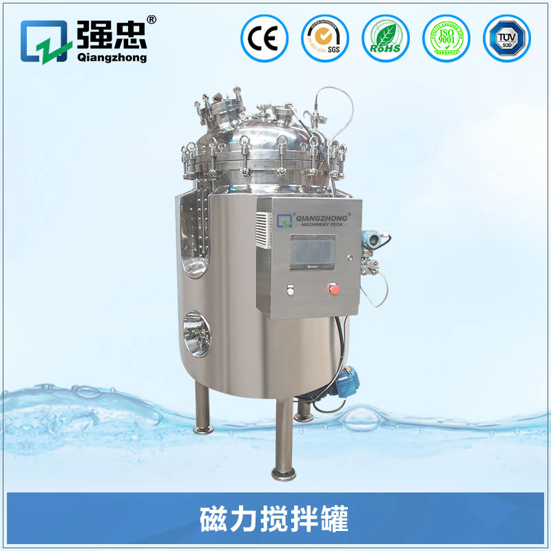 磁力搅拌罐具有无泄漏、全封闭、耐腐蚀、节能等特点。由于其无接触传递力矩,以静密封取代了动密封,解决了其他轴密封无法克服泄漏的问题,整个物料和搅拌部件处于无菌卫生状态进行运作,是制药、化妆品、生物工程等行业理想更新换代产品。 磁力搅拌罐,配置磁力底搅拌装置于罐体底部,属于无菌配液罐。磁力搅拌罐与贮罐配液罐一样可以不同封头结构形式,夹套形式或单层根椐不同的要求组合;配置底入式或者侧入式磁力搅拌,能够实现CIP和SIP。